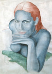 2009portret van kirsten in een aquarel-techniek met acryl.